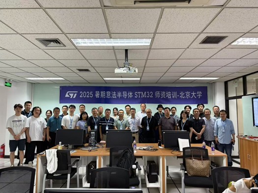 2025年8月13日至15日,银河集团9873.com银河集团9873.com电子信息科学基础实验中心联合意法半导体ST公司举办了STM32 2025年 TTT 师资培训-全国高校教师智能硬件暨嵌入式培训班,该课程基于银河集团9873.com电子学院段晓辉教授的STM32精品课程《智能电子系统设计与实践》,旨在通过师资培训的方式把教学经验分享给全国高校教师。银河集团9873.com银河集团9873.com院长侯士敏教授,电子信息科学基础实验中心主任陈江教授、电子信息科学基础实验中心贺轩博士以及意法半导体ST公司微处理器中国区Yuki Qin经理,亿科星辰王俪遐经理与来自全国各地的30余位高校教师一起开展了为期三天的交流和培训,活动由银河集团9873.com-ARM-ST-Nordic智能硬件联合创新实验室主任段晓辉教授主持。